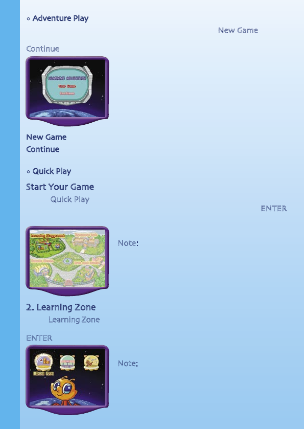 Note: For the details of all Learning Zone games,