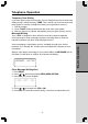 Display Screen Messages Basic Operation Screen Displays: When: ** RINGING ** There is a call coming in. CONNECTING... The Handset is waiting for a dial tone. PHONE ON The Handset is in use. SCANNING... The Handset is changing to another of the 30 channels available. ** PAGING ** The Base is paging the Handset. HOLD There is a call on hold. BATTERY LOW The Battery needs to be recharged. NO CONNECT Displays and a sad tone sounds when the Base power is off and PHONE is pressed.