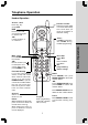 Telephone Operation Base Operation Message Waiting Indicator Basic Operation If you subscribe to telephone company voicemail with a visual message waiting signal, this light flashes, and MESSAGES WAITING displays on the Handset screen, when you have voicemail waiting. Page/Handset Locator Press to page the Handset. Press again, press OFF on Handset, or place Handset in it’s Base to cancel the page. In Use/Charging Indicator • Flashes in unison with the ring of an incoming call.