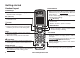 Getting started Handset layout MUTE/REMOVE • While on a call, press to mute microphone. • While reviewing the call log, press to delete an individual entry, or press and hold to delete the entire call log. • Press to delete digits when predialing (preview numbers before dialing). / (Directory) • Press to enter the directory when the handset is not in use. • While in the menu, press to scroll up. CHARGE light • On when the handset is charging in the telephone base or charger.
