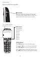 Getting started Quick reference guide MENU/SELECT DIR/VOLUME Press to scroll up while in menus. Press to display the menu. Press to increase the listening volume. Once in the menu, press to select an item or save an entry or setting. Press to show directory entries when the handset is not in use. OFF/CLEAR During a call, press to hang up. While entering names or numbers in the directory, press to move the cursor to the right.