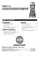 USB 711 Accessory Handset for USB7100 Table of contents Getting Started Appendix Quick reference guide ..................2 In case of difficulty .......................6 Parts checklist ...............................3 Care and maintenance ..................6 Belt clip & optional headset..........3 Important safety instructions........7 Warranty .......................................9 Installation & registration FCC, ACTA & IC regulations .......11 Battery installation & charging......