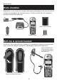 Getting Started Parts checklist Remember to save your sales receipt and original packaging in case you ever need to ship your telephone for warranty service. Check to make sure the telephone package includes the following: Battery compartment cover Handset charger Belt clip Telephone handset Batteries (2) Belt clip & optional headset Install belt clip as shown below if desired. For hands-free telephone conversations, you can use any industry standard 2.5 mm headset (purchased separately). Plug 2.