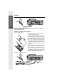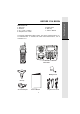 Getting Started Setup LINE1/ LINE2 L1+L2 DATA Connecting Power to Base Unit Plug the AC power adapter into an electrical outlet, and the DC connector into the back of the Base Unit Installation of Battery Pack in Handset Follow the steps below: 1. Remove the battery cover by pressing on the indent and sliding downward. 1 2. With the red and black wires at the bottom right corner of the pack, angle the top of the battery into the compartment, under the two claws.