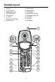 Handset Layout 1. 2. 3. 4. 5. 6. Antenna Volume Control Speakerphone LED CID (Scroll Down) Select (Menu) On (Flash) 7. Dialing Keys (0-9, 8. Redial (Pause) , #) 9. 10. 11. 12. 13. 14. 15. 16. Mute (Delete) Speakerphone LCD Display Headset jack (2.