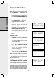 Answering System Operation Basic Operation MESSAGE WINDOW DISPLAY WINDOW DISPLAYS 0 1-98 TO INDICATE: 0-99 Memory is full or total number of messages is 99. F No messages in any mailbox. Total number of messages in all mailboxes. Counting 1 to 99 Duration of announcement or memo recording. (Maximum length of announcement is 90 seconds.) 99 (flashing) Length of recording is more than 99 seconds. 1-99 (flashing) New message number message playback.