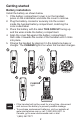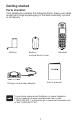 Table of contents Getting started............................... 1 Parts checklist.................................. 1 Battery installation .......................... 2 Battery charging............................... 3 Add and register a handset.............. 4 Replace a handset........................... 5 Handset layout................................. 6 Appendix......................................... 8 Battery.............................................. 8 Important safety instructions............