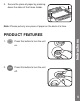 3. Secure the piece of paper by pressing down the sides of the frame holder. Note: Please put only one piece of paper on the desk at a time. 1. Press this button to turn the unit on. 2. Instructions PRODUCT FEATURES Press this button to turn the unit off.