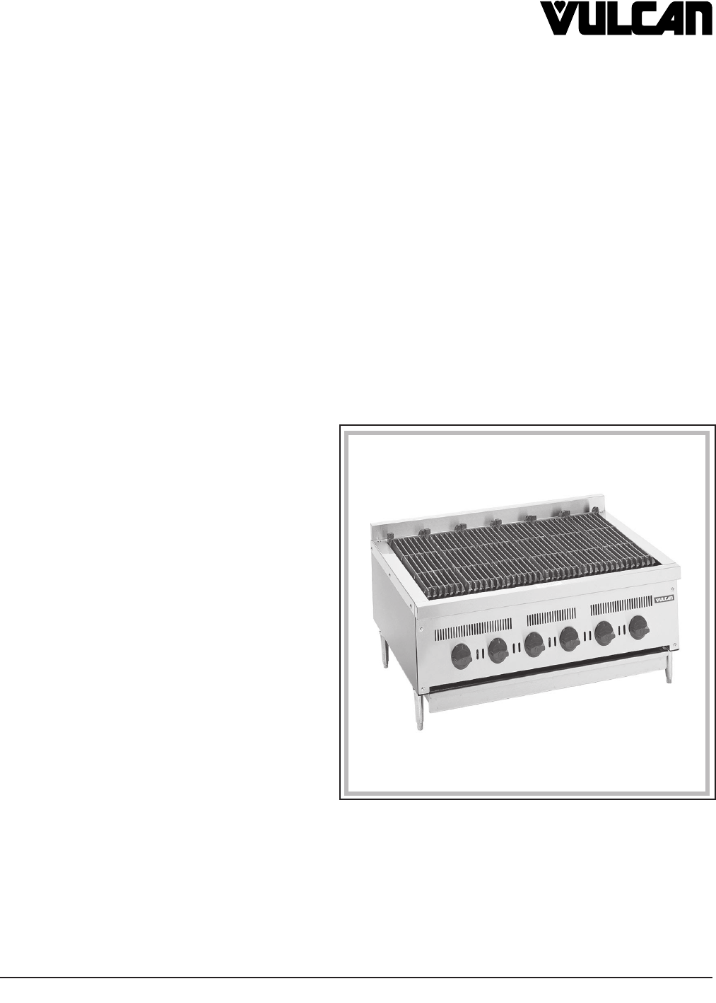 INSTALLATION & OPERATION MANUAL VCB25, VCB36, VCB47 SERIES CHARBROILERS MODELS VCB25S VCB25M VCB36 VCB36S VCB36C VCB36M VCB47S VCB47M ML-44908Z ML-44963Z ML-44966 ML-44909Z ML-44967 ML-44964Z ML-44910Z ML-44965Z Model VCB36C VULCAN-HART COMPANY, FORM 31167 (Jan. 2001) P.O. BOX 696, LOUISVILLE, –1– KY 40201-0696, TEL.