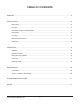 TABLE OF CONTENTS GENERAL.............................................................................................................................................. 3 INSTALLATION ..................................................................................................................................... 3 Unpacking .................................................................................................................................. 3 Location .......................................