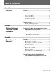 Table of Contents Chapter1 Overview Features ............................................................................. 7 System Configuration .................................................... 11 Location and Function of Parts ..................................... 12 Upper Control Panel ............................................................. 13 Lower Control Panel ............................................................ 16 Subsidiary Control Panel ..........................................