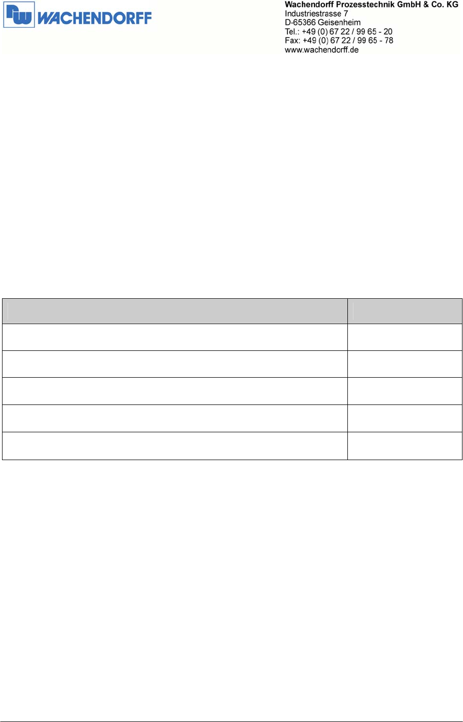 © Copyright by Wachendorff Prozesstechnik GmbH & Co. KG, Industriestraße 7, D-65366 Geisenheim, Tel.: 06722/9965-20, Fax.: -78