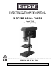 Index P. 1 Important Safety Instructions P. 2 Safety Instruction for Drill Press P. 3 - 7 General Safety Rules P. 8, 9 List of Main Parts P. 10 Tech. Specifications, Contents of Packaging P. 11 Assembly and Operation P. 12 - 16 Maintenance P. 17 Trouble Shooting P. 17, 18 Service Center P. 18 Warranty Information P. 19 Warranty Card P.