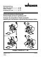 g Servicing Repairs on the unit 10. Servicing 10.1 General servicing Servicing of the unit should be carried out once annually by the WAGNER service. 1. Check high-pressure hoses, unit connection line, plug and socket for damage. 2. Check inlet valve, outlet valve, diaphragm and filter for wear. 3. Check oil level (fig. 19) in the horizontal set-up. 4. Remove clasp (3) by means of a screwdriver. 5. Place accompanying spanner 30 mm on the inlet valve (2). Withdraw carefully turning the inlet valve. 6.