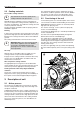 g Interruption of work Cleaning unit (shutting down operation) 7. Interruption of work 6. 1. 7. 2. 3. 4. 5. 6. Open the relief valve, valve position k (circulation). Switch off the unit. Pull trigger guard of spray gun to decrease the pressure of the highpressure hose and the spray gun. Secure spray gun, see operating manual for spray gun. If the tip is to be cleaned, see page 46, point 13.2.