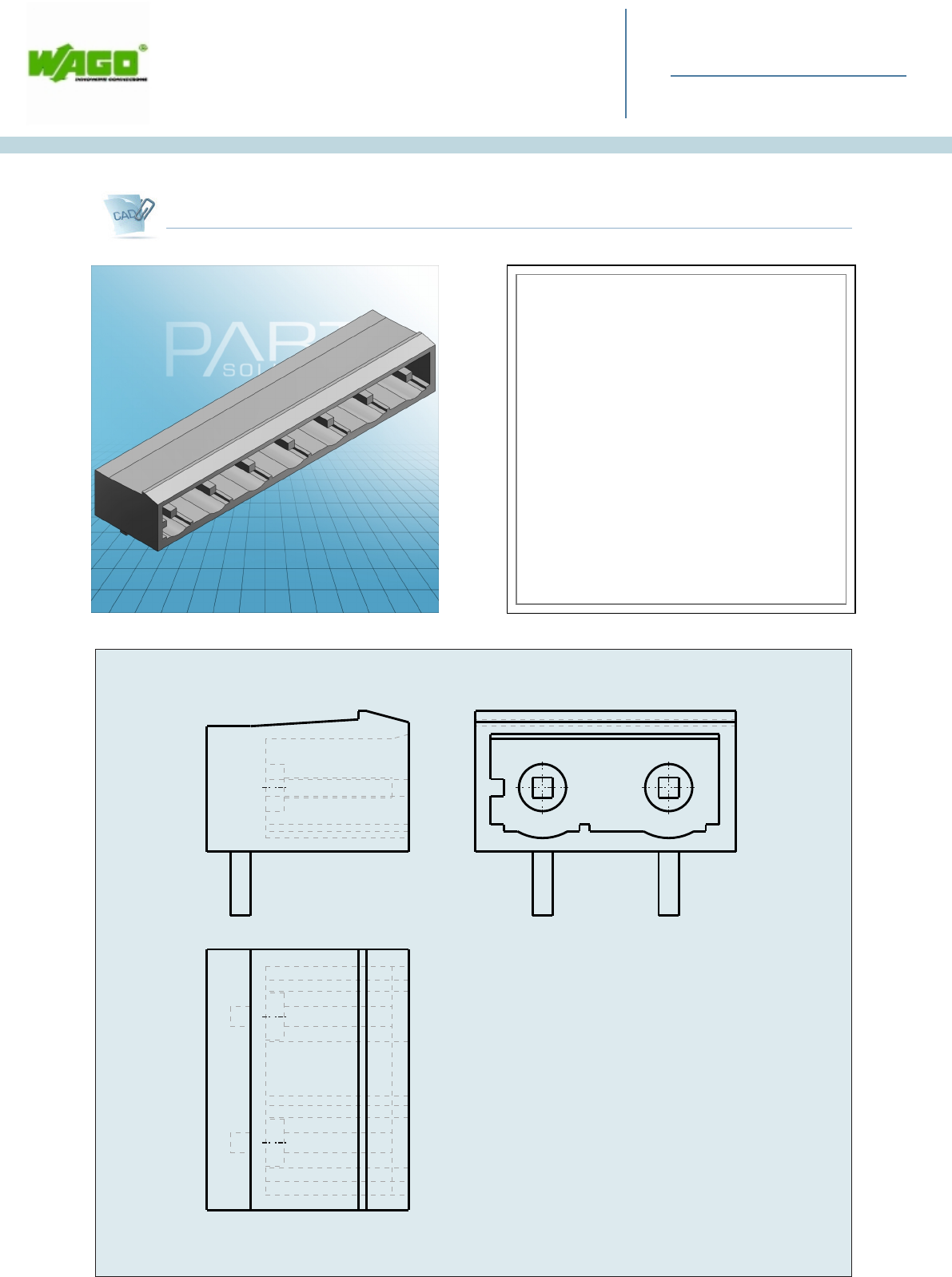 HEADER RIGHT ANGLE SOLDER PIN, 1.2 X 1.2 MM/ 0.047 X 0.047 IN PIN SPACING 7,5 mm / 0.295 in 231-862/001-000 TO 231-876/001-000 ITEM-NO. (ITEM-NO.) 231-867/001-000 Measured voltage (Measured voltage / V) 630 PDF Datasheet © 1992 - 2011 CADENAS GmbH Measured shock voltage (Measured shock voltage / kV) 6 Pollution degree (Pollution degree) 2 Current intensity (Current intensity / A) 16 RM (PIN SPACING / mm) 7.5 P (NO. OF POLES) 7 Height (Height / mm) 8.
