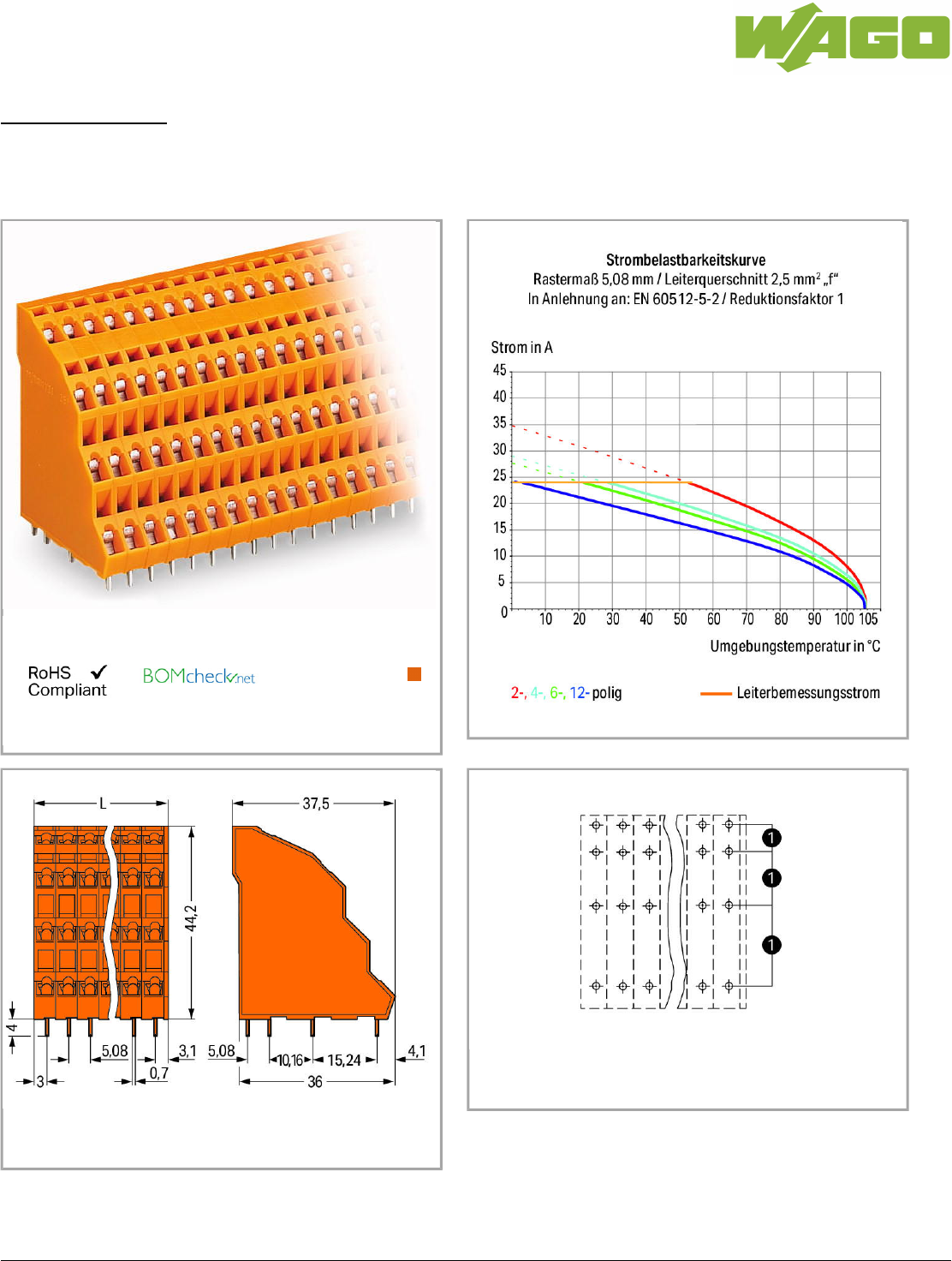 Fiche technique | Numéro d'article: 738-306 Borne pour circuits imprimés 4 étages; 2,5 mm²; Pas 5,08 mm; 4 x 6-pôles; CAGE CLAMP® www.wago.com/738-306 Couleur: (1) Lötstifte in Reihe L = (pole no. x pin spacing) + 1 mm Description du produit : 07.12.