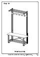 Use wrench (P) to secure shelf frame (6) to side frame (2) with bolt (E) through fixed L shape bracket. Use wrench (P) to secure part (5) to side frame (2) with bolt (A).