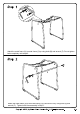 Attach the metal frame (2) to metal frame (3) by using bolts (B) and wrench (F). Do not tighten bolts completely until step #2. Attach the metal tubes (4) to the metal frame (2)(3) and secure it by using bolts (A) and wrench (F). Tighten bolts from assembly in Step 1.
