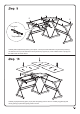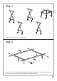 2 A 2 C C 3 C 1 Attach upper crossbars (2) and lower crossbar (3) to leg (1) using medium bolts (C). Tighten medium bolts (C) with wrench (A). D D 5 3 C Attach leg (1) and corner frame (5) to the assembly from the previous step using long bolts (D). Ensure that the glass supports of corner frame (5) are facing up (reference Steps 8 and 9). Secure leg (1) to lower crossbar (3) using medium bolts (C). Tighten all bolts with wrench (A).