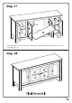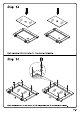 Insert shelf support pins (F) into the stand assembly at the desired shelf heights. Place shelves (12,13) on