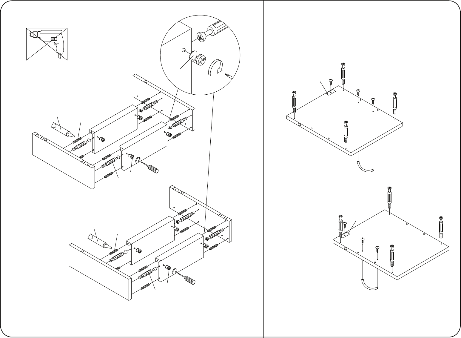 Tighten cam locks (A) using a screwdriver as shown in the diagram.
