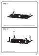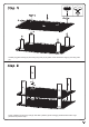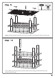 Carefully lay glass top (1) upside down on a soft surface. Screw short rods (B) into the metal plates of glass top (1). Screw cylinders (6) onto short rods (B).