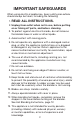 IMPORTANT SAFEGUARDS When using electrical appliances, basic safety precautions should always be taken, including the following: 1. READ ALL INSTRUCTIONS. 2. Unplug from outlet when not in use, before putting on or taking off parts, and before cleaning. 3. To protect against electrical hazards, do not immerse the blender base in water or other liquids. 4. Avoid contact with moving parts. 5.