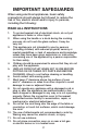 IMPORTANT SAFEGUARDS When using electrical appliances, basic safety precautions should always be followed to reduce the risk of fire, electric shock and/or injury to persons, including the following: READ ALL INSTRUCTIONS 1. To protect against risk of electrical shock, do not put appliance in water or other liquid. 2. When using the handle or a knob during the cooking process, do not touch the glass surface. It may be very hot. 3.