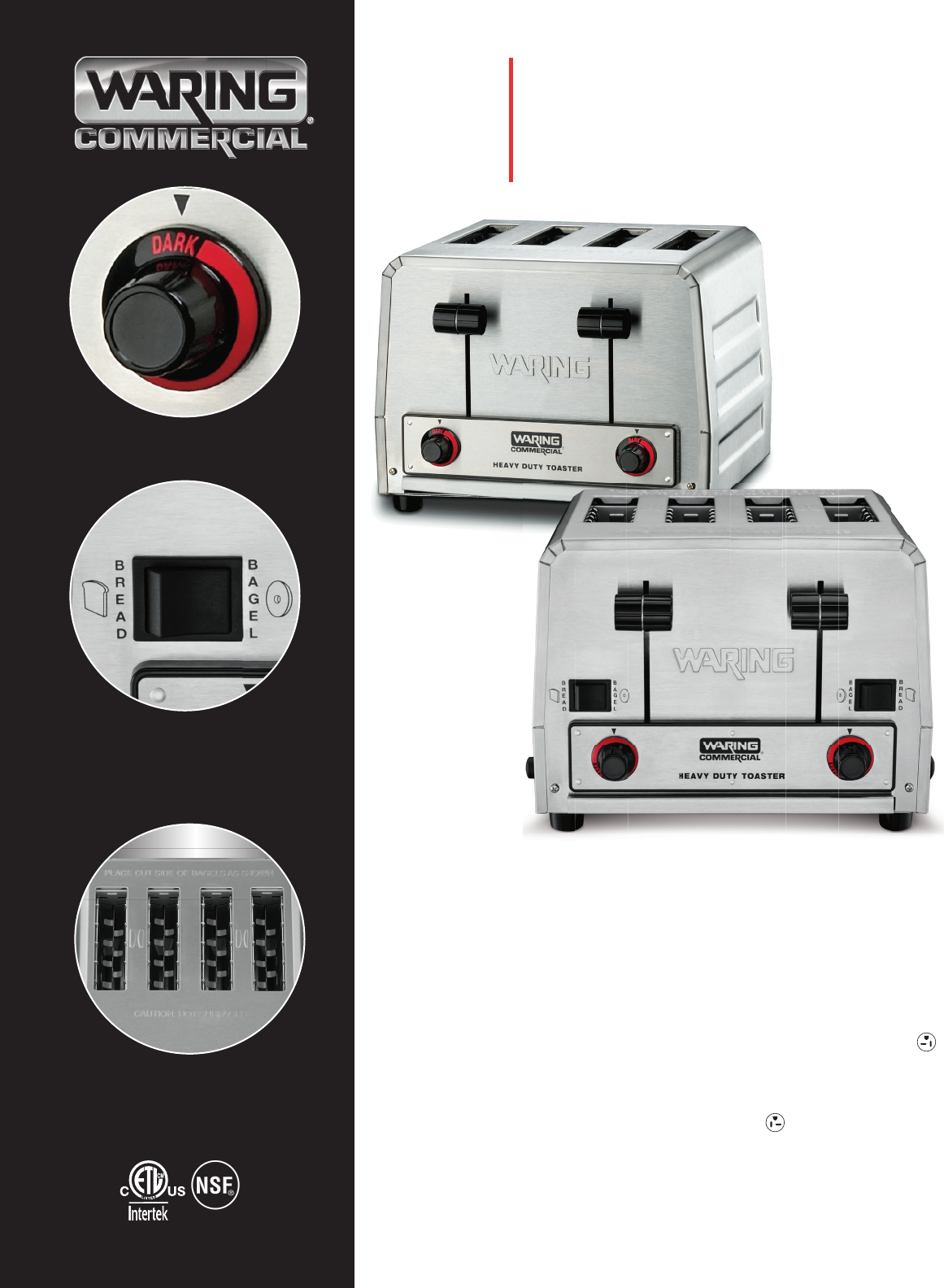 – Four 1 ½" extra-wide slots; 360 slices/hr.