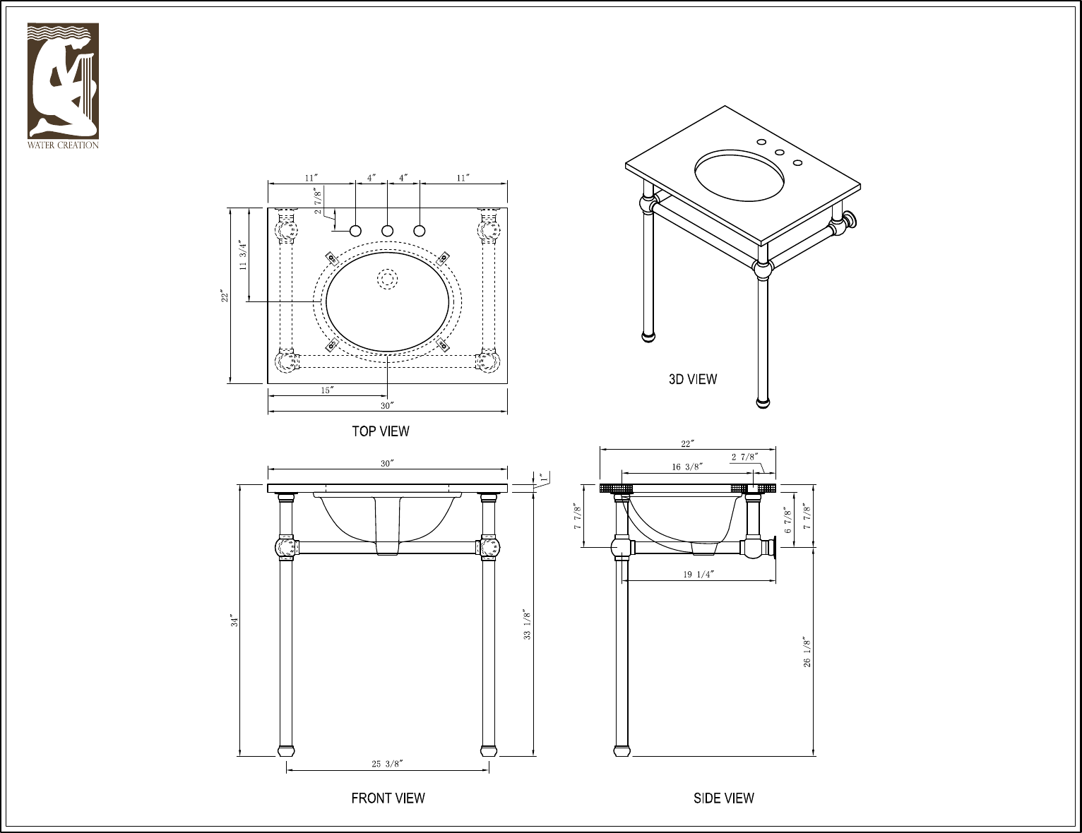 Embassy 30 in. Brass Wash Stand with Satin Brass P-Trap Kit, Faucet, Marble Counter Top, and White Basin