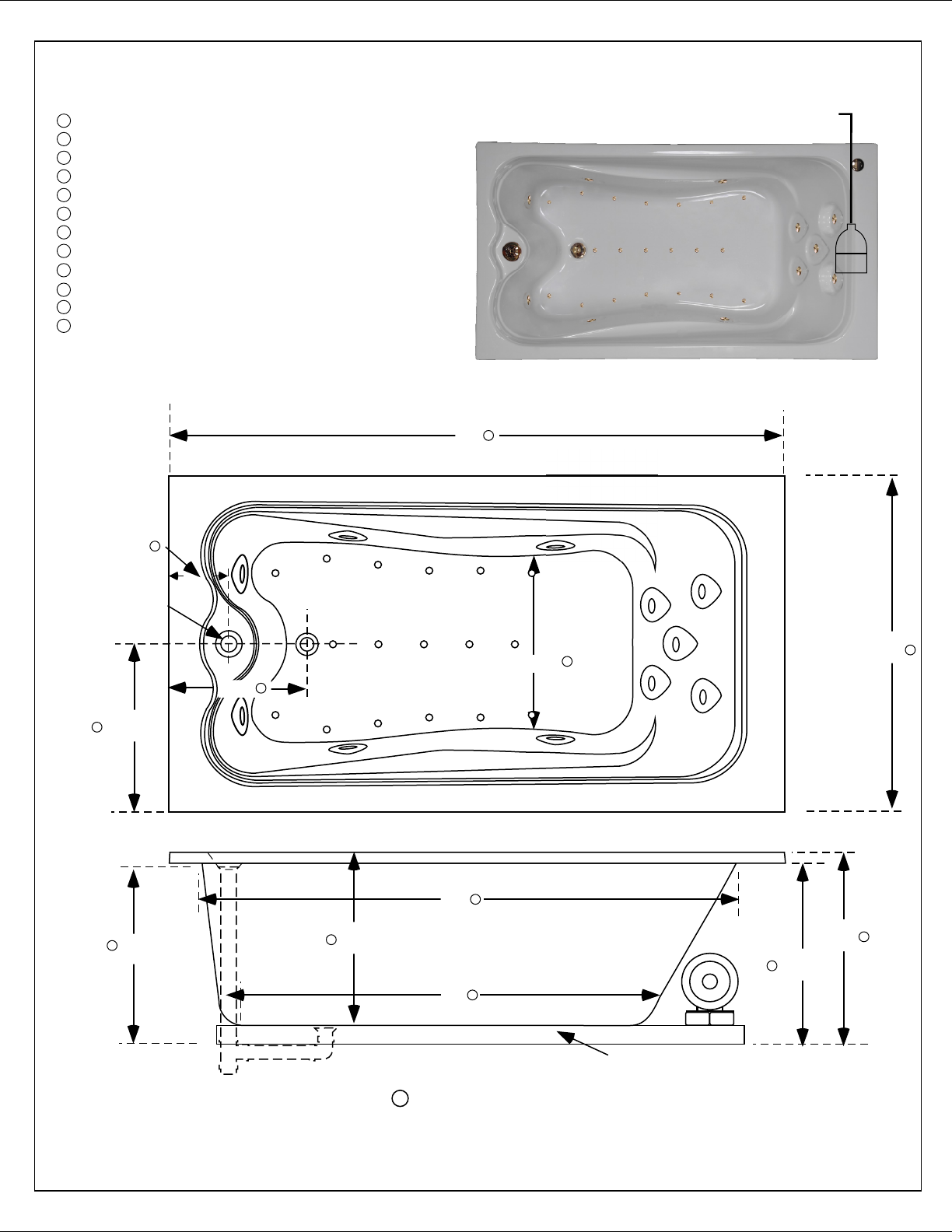 for this tub. Custom pump locations available - please call Watertech Whirlpool Baths for details. Measurements are plus or minus 1/2",