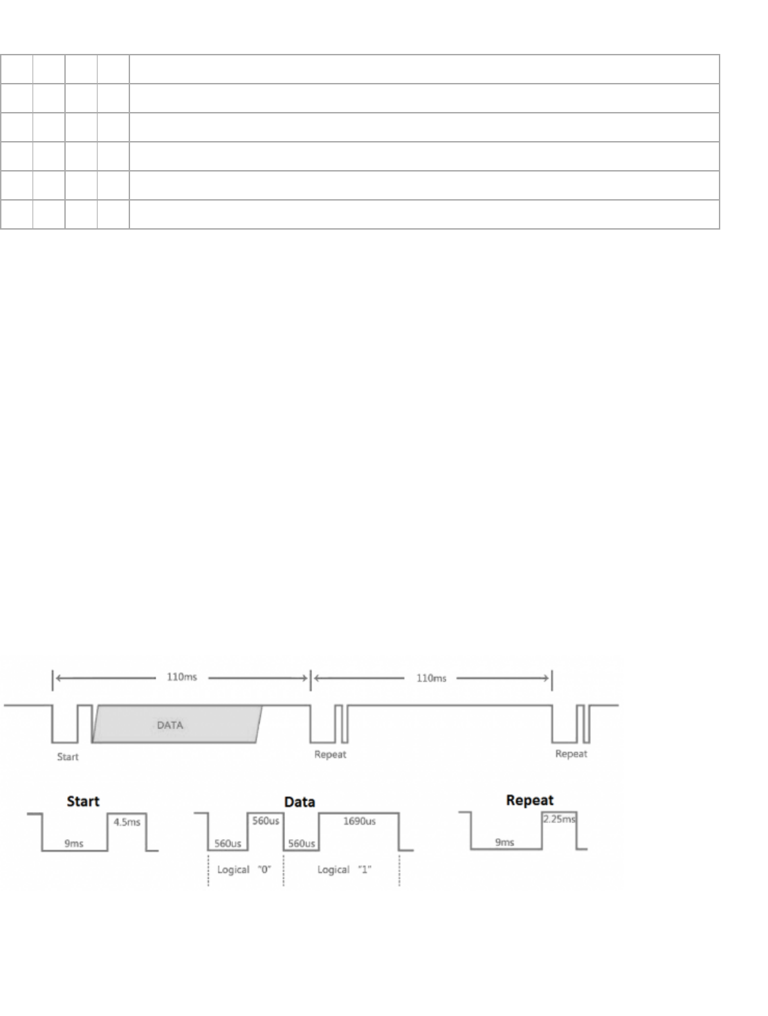 signal from the infrared remote controller complies with the NEC standard. The infrared remote receiver