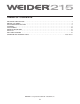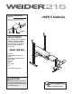 BEFORE YOU BEGIN Thank you for selecting the WEIDER® 215 weight bench. The versatile WEIDER 215 weight bench is designed to be used with your own weight set (not included) to develop the major muscle groups of the body. Whether your goal is a shapely figure, dramatic muscle size and strength, or a healthier cardiovascular system, the WEIDER 215 weight bench will help you to achieve the specific results you want. reading this manual, please call the telephone number on the front cover of this manual.