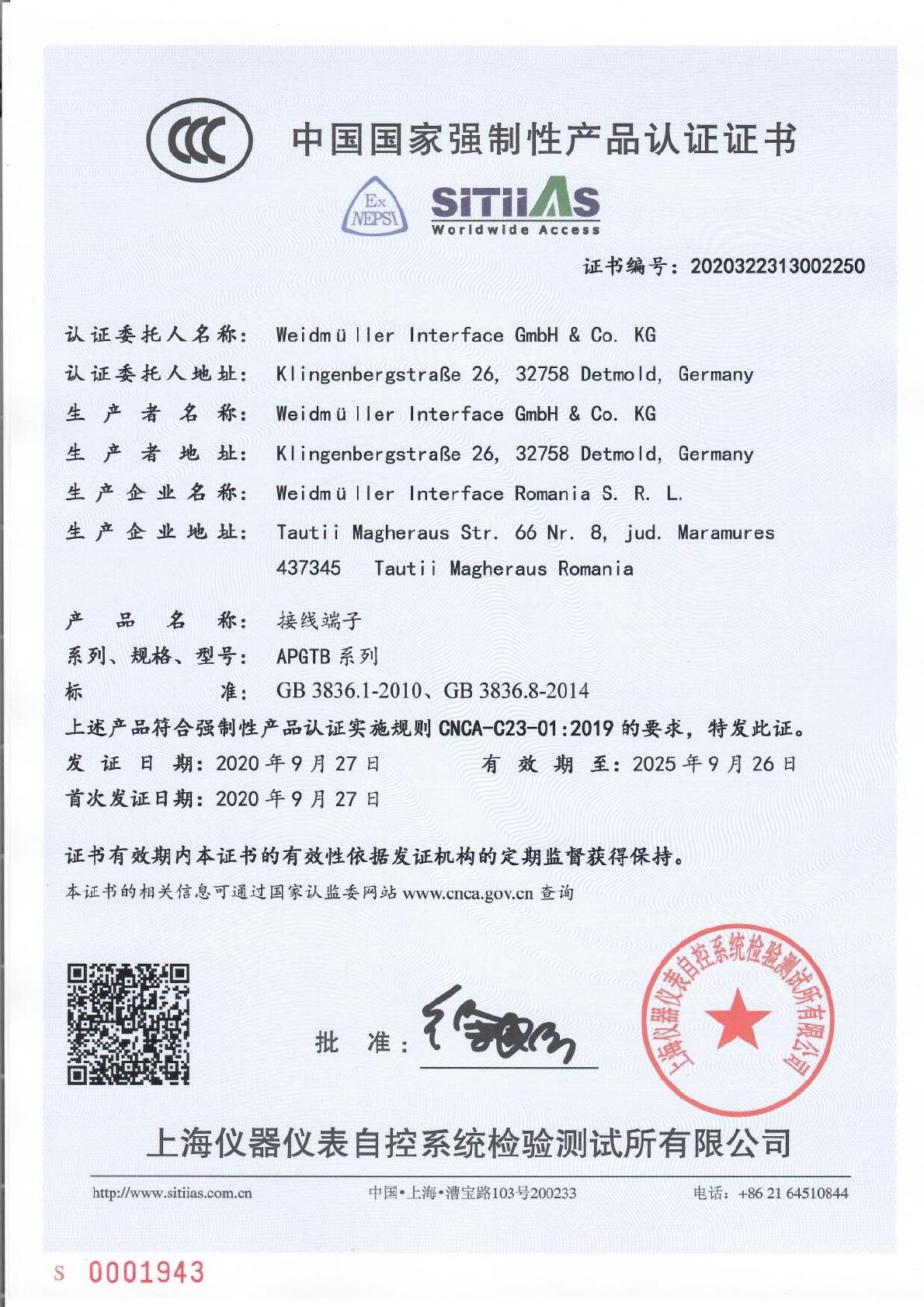 Approval/Certificate/Document of Conformity