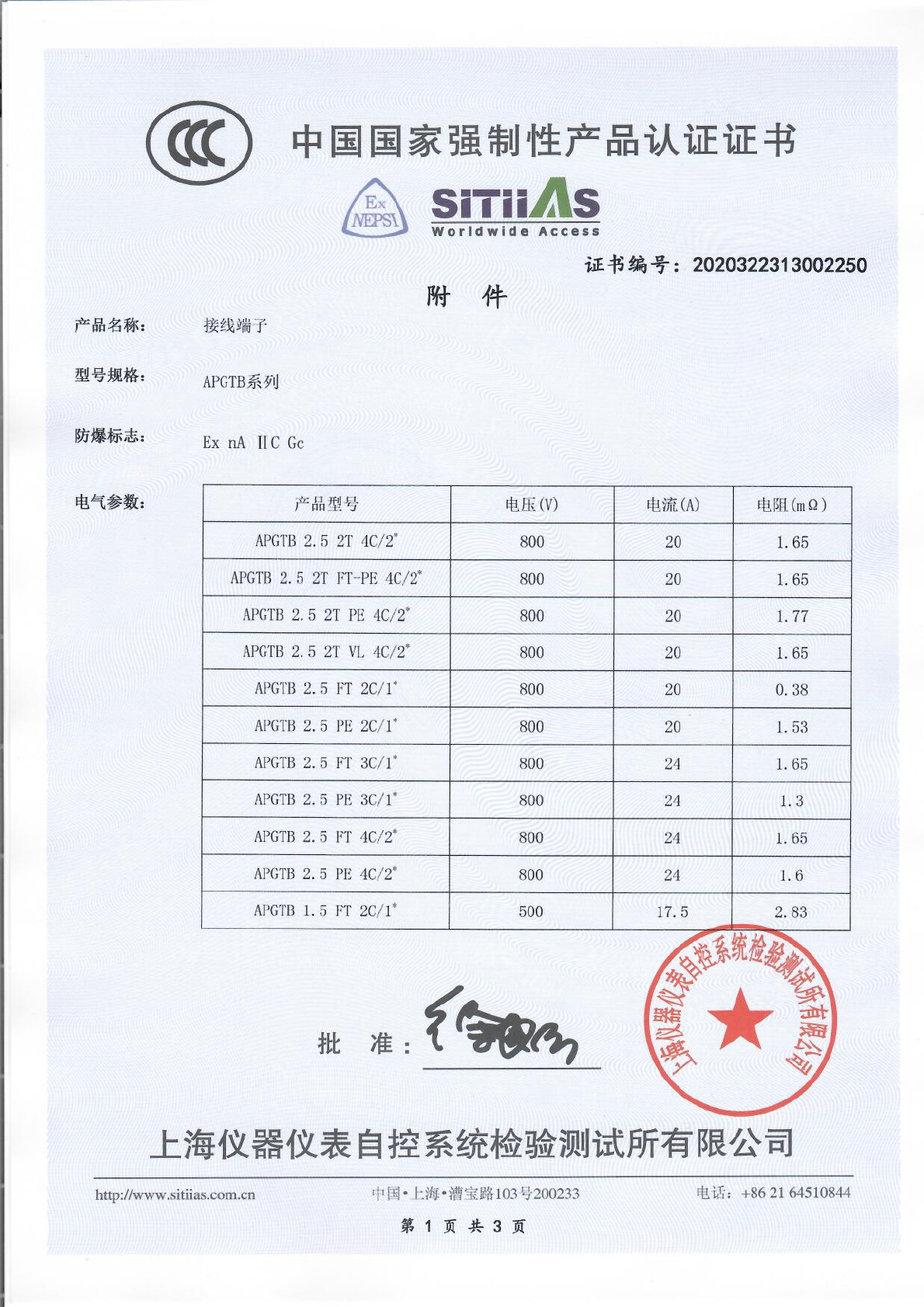 Approval/Certificate/Document of Conformity