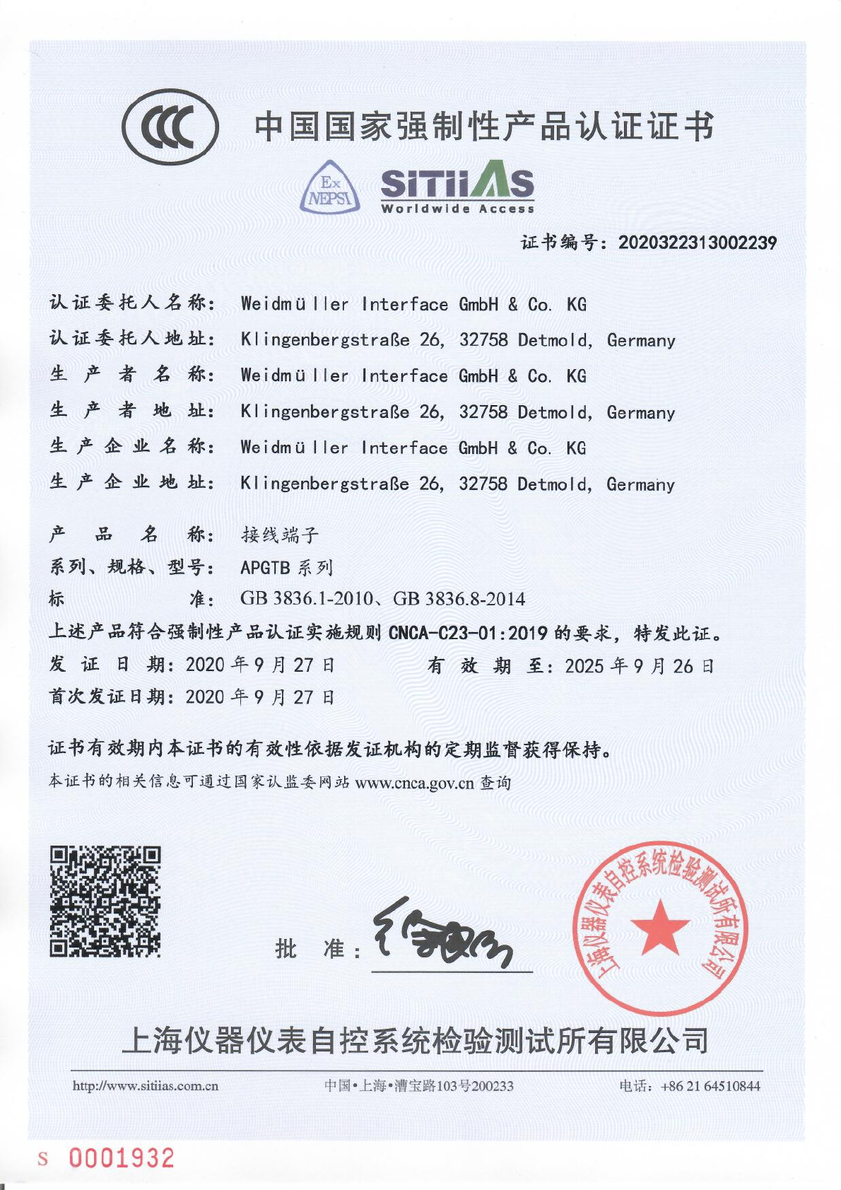 Approval/Certificate/Document of Conformity