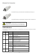 Ethernet Port Connection Use PushPull data plug: 1012170000 IE-PS-V14M-RJ45-FH-P for RJ45 port Use PushPull data plug: 1191550000 IE-PS-V14M-2SC-POF for SCRJ/POF port ATTENTION This is a Class 1 Laser/LED product. To avoid causing serious damage to your eyes, do not stare directly into the Laser Beam. LED Indicators The front panel of the Ethernet Switch contains several LED indicators. The function of each LED is described in the table below.