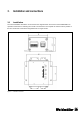 3. Installation and connections 3.1 Installation The exact installation dimensions can be found in the diagram below. The FreeCon Active PROFINET FO repeater is mounted to a wall using four screws. Use the device as a template to draw the correct position of the four screws. We recommend using M4x10 mm or longer screws.