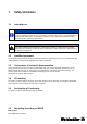 1. Safety information 1.1 Intended use NOTE The device is only intended for the applications described in the operating instructions. Any other usage is unauthorised and can lead to accidents or damage to the device. The unauthorised use of the product shall result in an immediate invalidation of any warranty and guarantee claims from the operator against the manufacturer.