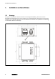 Installation und Anschlüsse 3. Installation und Anschlüsse 3.1 Montage Die genauen Einbaumaße entnehmen Sie bitte der nachfolgenden Abbildung. Der FreeCon Active PROFINET-POF-Repeater wird mit vier Schrauben an einer Wand befestigt. Verwenden Sie das Gerät als Schablone, um die korrekten Positionen der vier Schrauben anzuzeichnen. Wir empfehlen die Verwendung von Schrauben M4x10 mm oder länger. Abb. 3 10 Einbaumaße 1253240000/00/02.