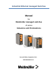 Industrial Ethernet managed Switches Manual The software described in this manual is furnished under a license agreement and may be used only in accordance with the terms of that agreement. Copyright Notice Copyright ©2016 Weidmüller Interface GmbH & Co. KG All rights reserved. Reproduction without permission is prohibited. Disclaimer Information in this document is subject to change without notice and does not represent a commitment on the part of Weidmüller.