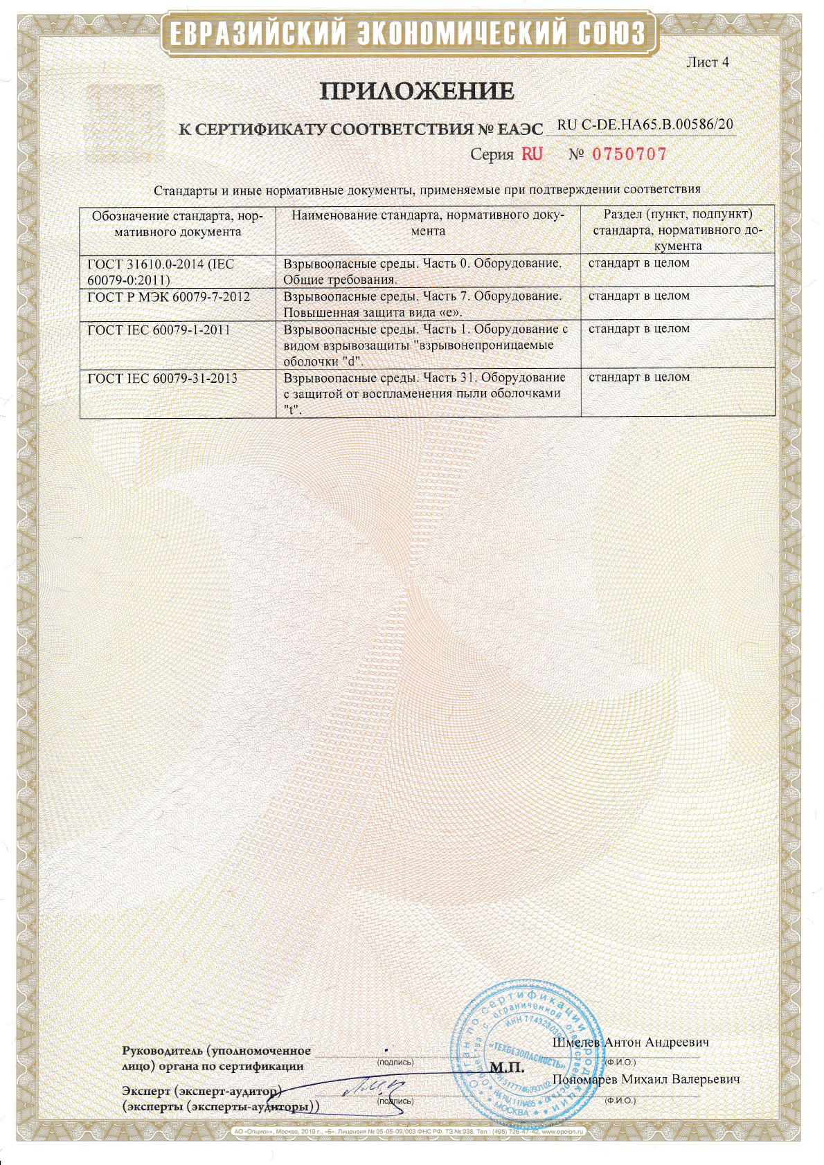 Approval/Certificate/Document of Conformity