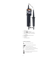 1 3 2 4 5 6 7 1 Test electrodes (LV indication) 2 Red LED for voltages ≥ 50 V AC / 120 V DC 3 Green LED „Ω“ signalizes continuity 0 ...