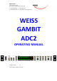 digital audio weiss engineering ltd. Florastrasse 42, 8610 Uster, Switzerland +41 44 940 20 06 +41 44 940 22 14 http://www.weiss.ch / http://www.weiss-highend.com WEISS GAMBIT ADC2 OPERATING MANUAL Software Version: 3.1 Firewire option update 12.10.
