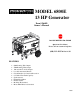 MODEL 6800E 13 HP Generator Item # 56680 Owner’s Manual DO NOT RETURN TO STORE Questions? Problems? Please call our customer help line: (800) 232-1195 M-F 8-5 CST FEATURES • • • • • • • • • • • 6800 Starting Watt Output 5500 Running Watt Output 120 and 240 Volt AC Outputs Low Oil Automatic Shutoff Circuit Breaker for Overload Protection 6.