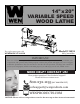 4" x 20" VARIABLE SPEED WOOD LATHE Model # 34034 For replacement parts visit WENPRODUCTS.COM bit.ly/wenvideo IMPORTANT: Your new tool has been engineered and manufactured to WEN’s highest standards for dependability, ease of operation, and operator safety. When properly cared for, this product will supply you years of rugged, trouble-free performance. Pay close attention to the rules for safe operation, warnings, and cautions.