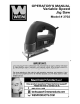 CONTENTS Technical data…..……………………………………………………….. General safety rules…….……………………………………………….. Specific safety rules for jig saw….……………………………………… Electrical information …………………………………………………... Blade installation………………………………………………………… Operating your jig saw…………………………………………………... Exploded view and parts list……………………………………………… Warranty………………………………………………………………… TECHNICAL DATA Variable Speed Jig Saw Model: Motor: Variable Speed: Stroke Length: Cutting Angles: Weight: 3702 120 V, 60 Hz, 3.