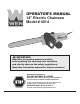 OPERATOR’S MANUAL 14" Electric Chainsaw Model # 4014 Important: Read this instruction manual carefully before putting the chainsaw into operation and strictly observe the safety regulations! Keep this instruction manual for future reference! Questions? Problems? DO NOT RETURN TO STORE Store personnel where the winch was purchased are not trained to handle technical questions.