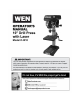 Maintenance WARNING: For your own safety, turn the switch OFF and remove the plug from the power source before maintaining or lubricating the drill press. Blow out or vacuum sawdust or metal chips that accumulate in and on the motor, pulley housing, table, and work surface. Apply a light coat of paste wax to the column and table to help keep these surfaces clean and rustfree. The ball bearings in the spindle and the V-belt pulley assembly are greased and permanently sealed.